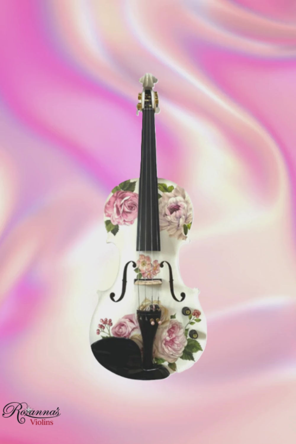 The Rose Delight Electric Acoustic Violin is more than just a musical instrument; it's a true work of art. Each violin features a hand-applied delicate rose pattern, enhanced with faux pearl and crystal details. With wood sourced from the Carpathian Mountains and seasoned for over 5 years, this violin promises exceptional quality and sound.