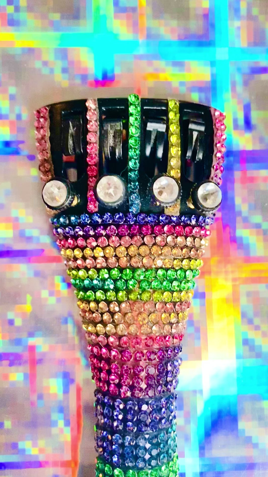 Unleash the vibrant sound of your violin with Rozannas Rainbow Tailpiece - where elegance meets colorful brilliance through multi-color crystals and ebonite 4 fine tuners.